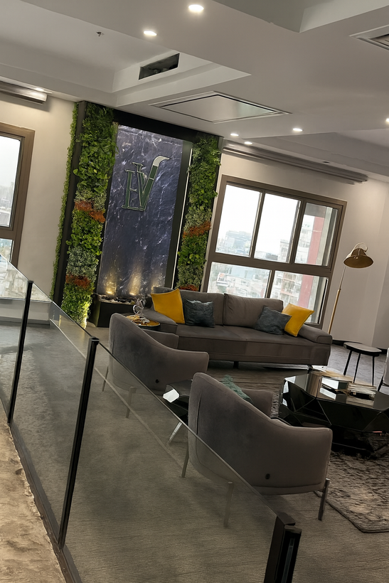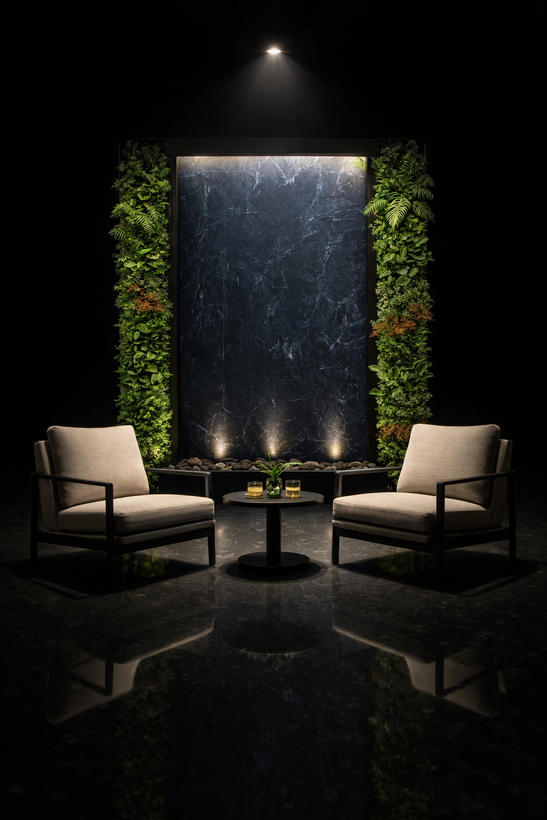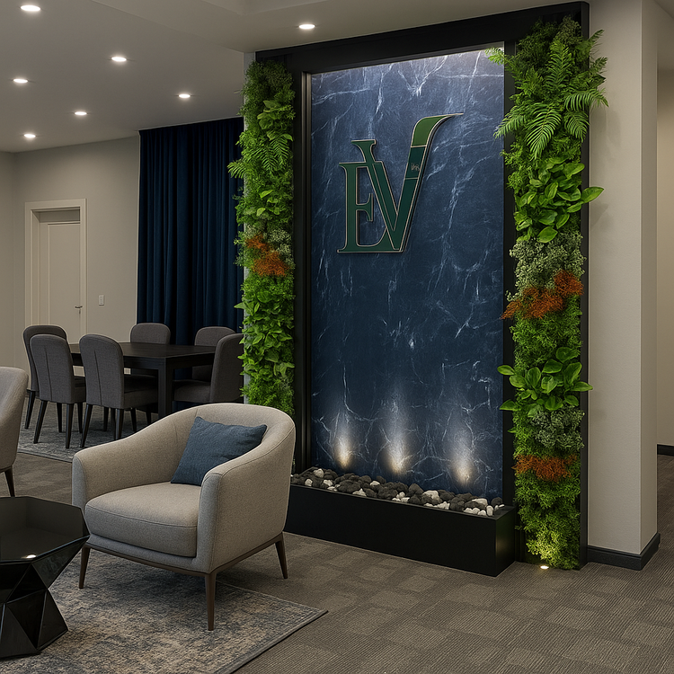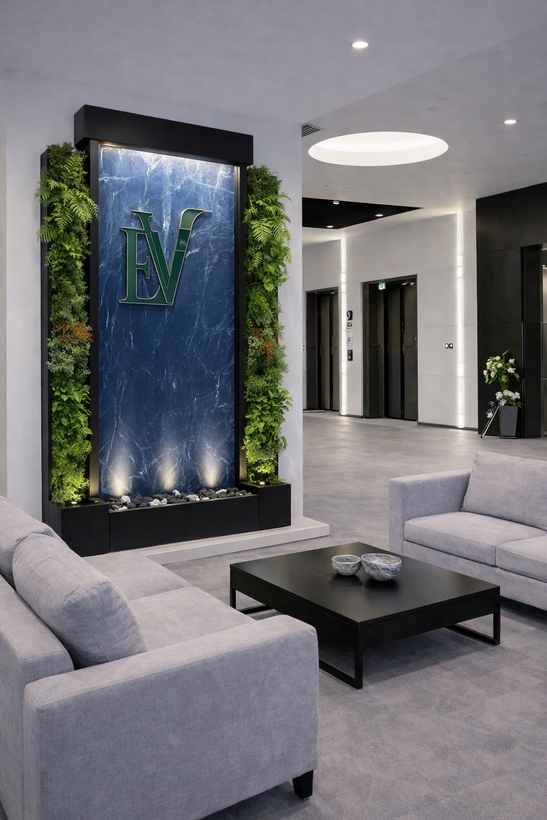 آبنما دیوار خیس با سرامیک اسلب و دیوار سبز مصنوعی
