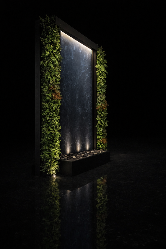 مدل: آبنما دیوار خیس با سرامیک اسلب و دیوار سبز مصنوعی