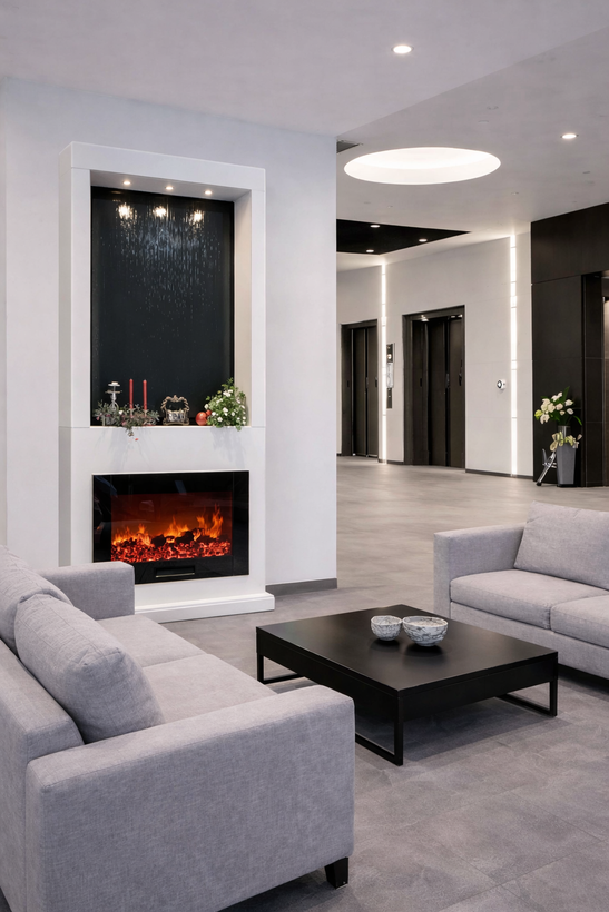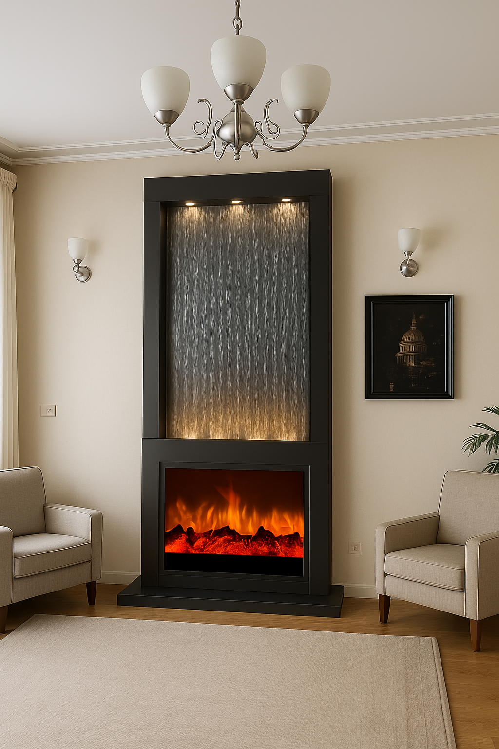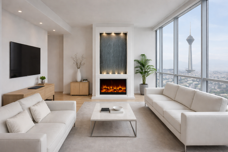 آبنما شومینه ای ترکیبی از آبنمای آینه ای با شومینه برقی سه بعدی می باشد.